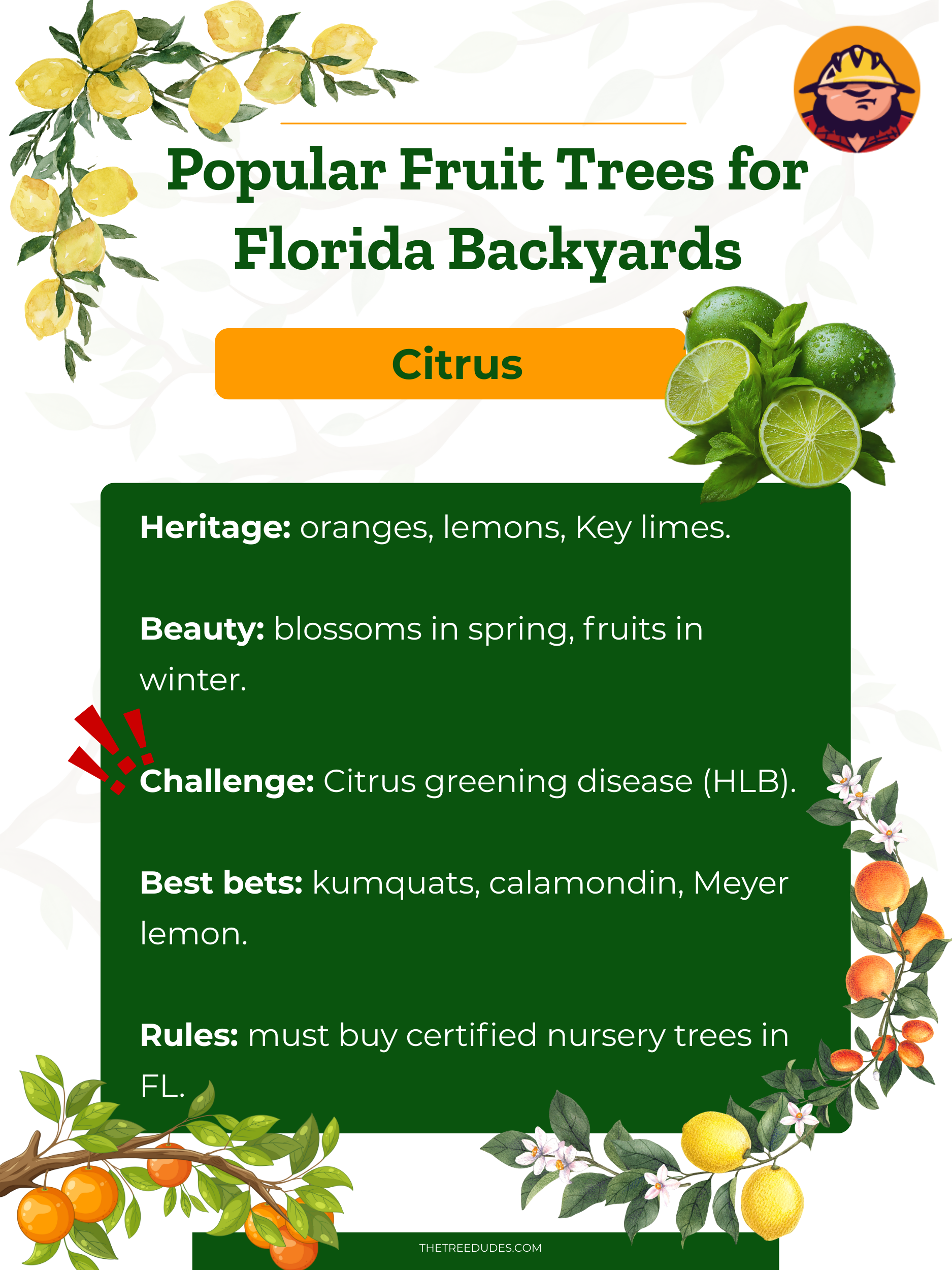 Sería difícil hablar de los árboles frutales de Florida sin mencionar los cítricos: las naranjas, pomelos, limones y limas que una vez cubrieron el estado con arboledas y aún salpican muchos patios traseros.