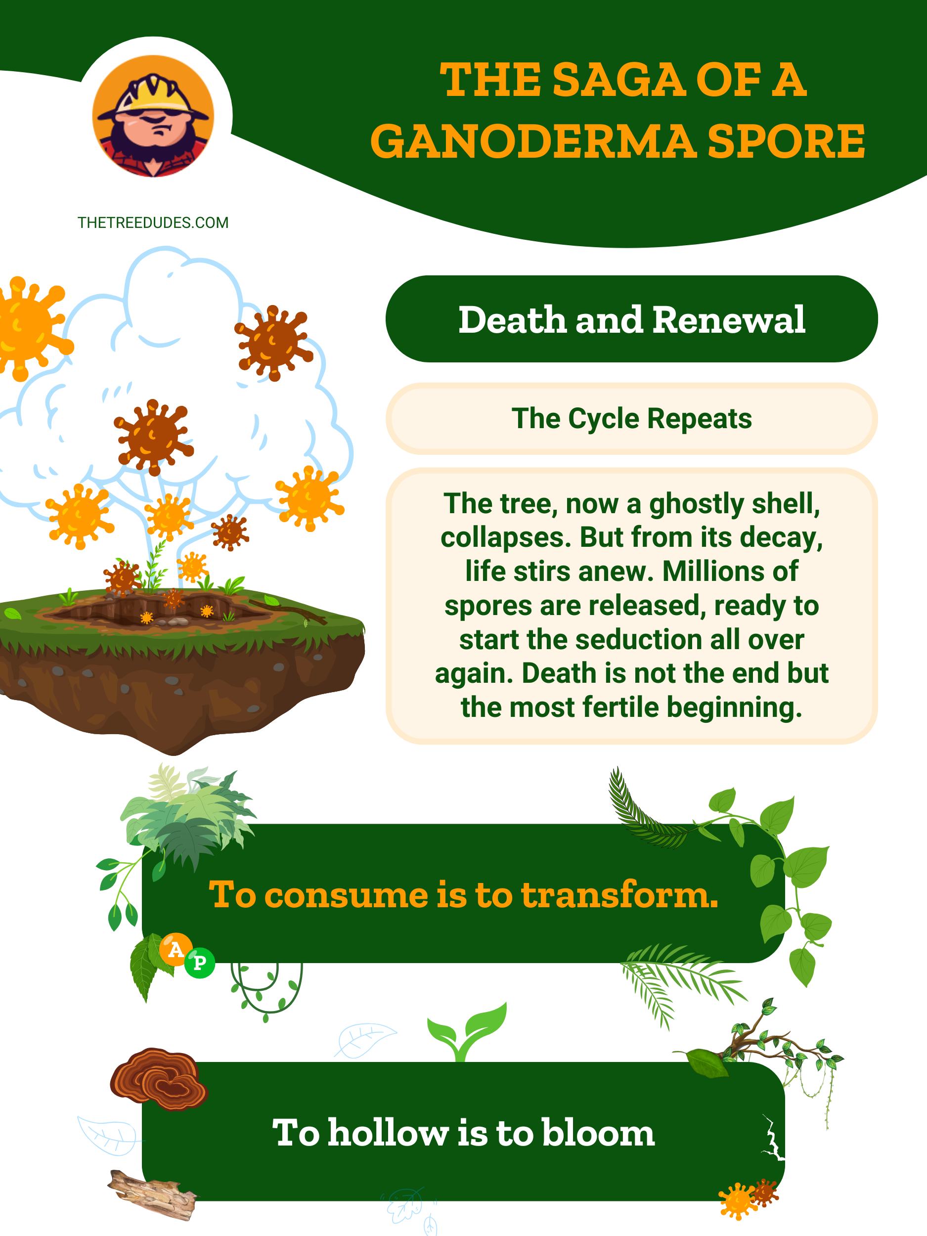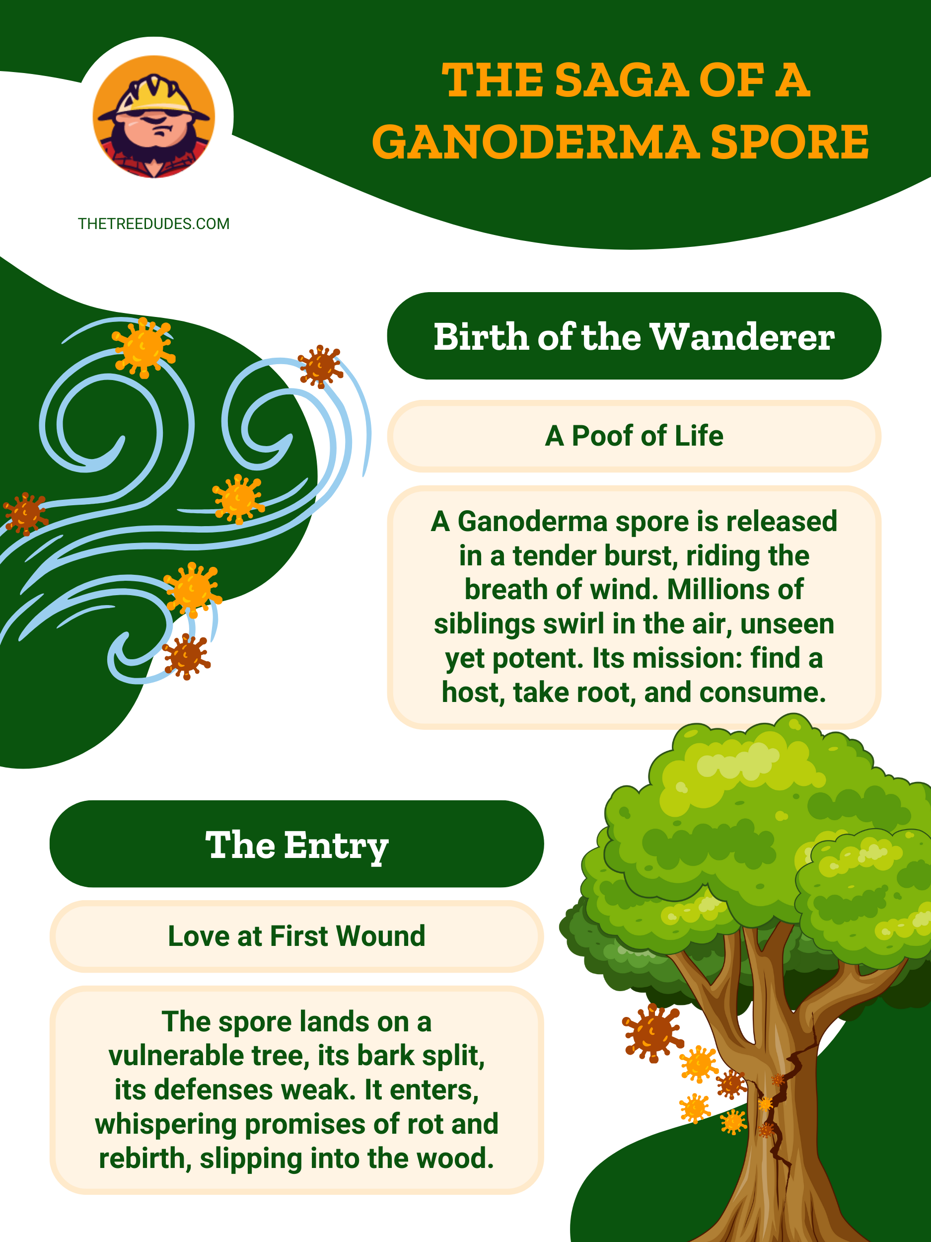 Una diminuta espora, tan pequeña que no se puede ver, aterriza en el punto dañado de un árbol. Podría ser un arce, con sus ramas que se elevan con seguridad hacia el cielo de Florida, o tal vez sea una palmera alta y orgullosa. El árbol no tiene idea, pero este pequeño encuentro está a punto de cambiarlo todo.