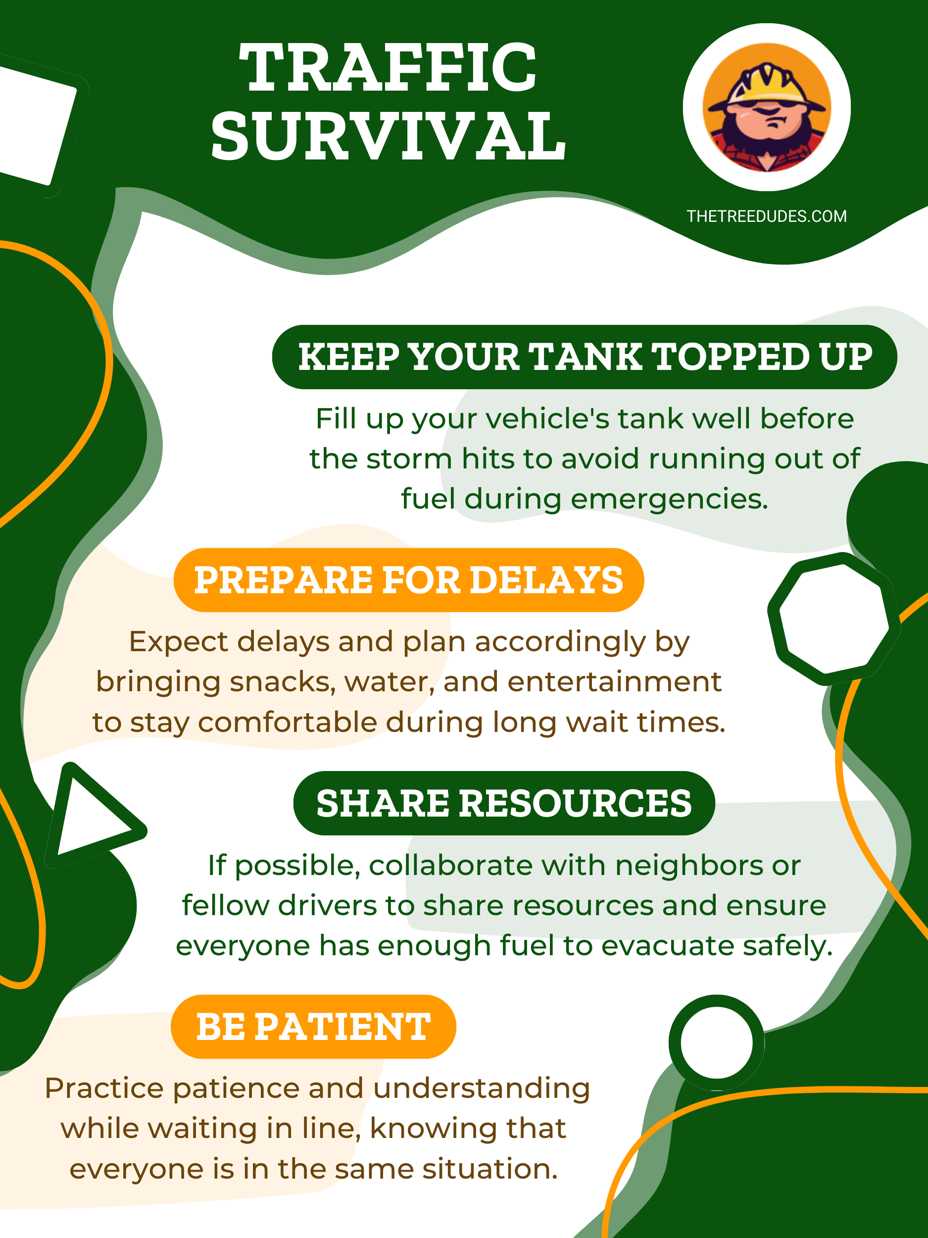 Para garantizar su bienestar en la carretera, su automóvil o camión también debe estar equipado con artículos que le permitan sobrevivir al menos un poco más, como agua, bocadillos y elementos de primeros auxilios. Sabiendo que tiene todo esto cubierto, será más fácil mantener la cabeza fría mientras se encuentra parado por el tráfico mientras el huracán azota los vehículos. Si cuida de sí mismo y de sus necesidades, lo más probable es que pueda regresar a casa con sus seres queridos.