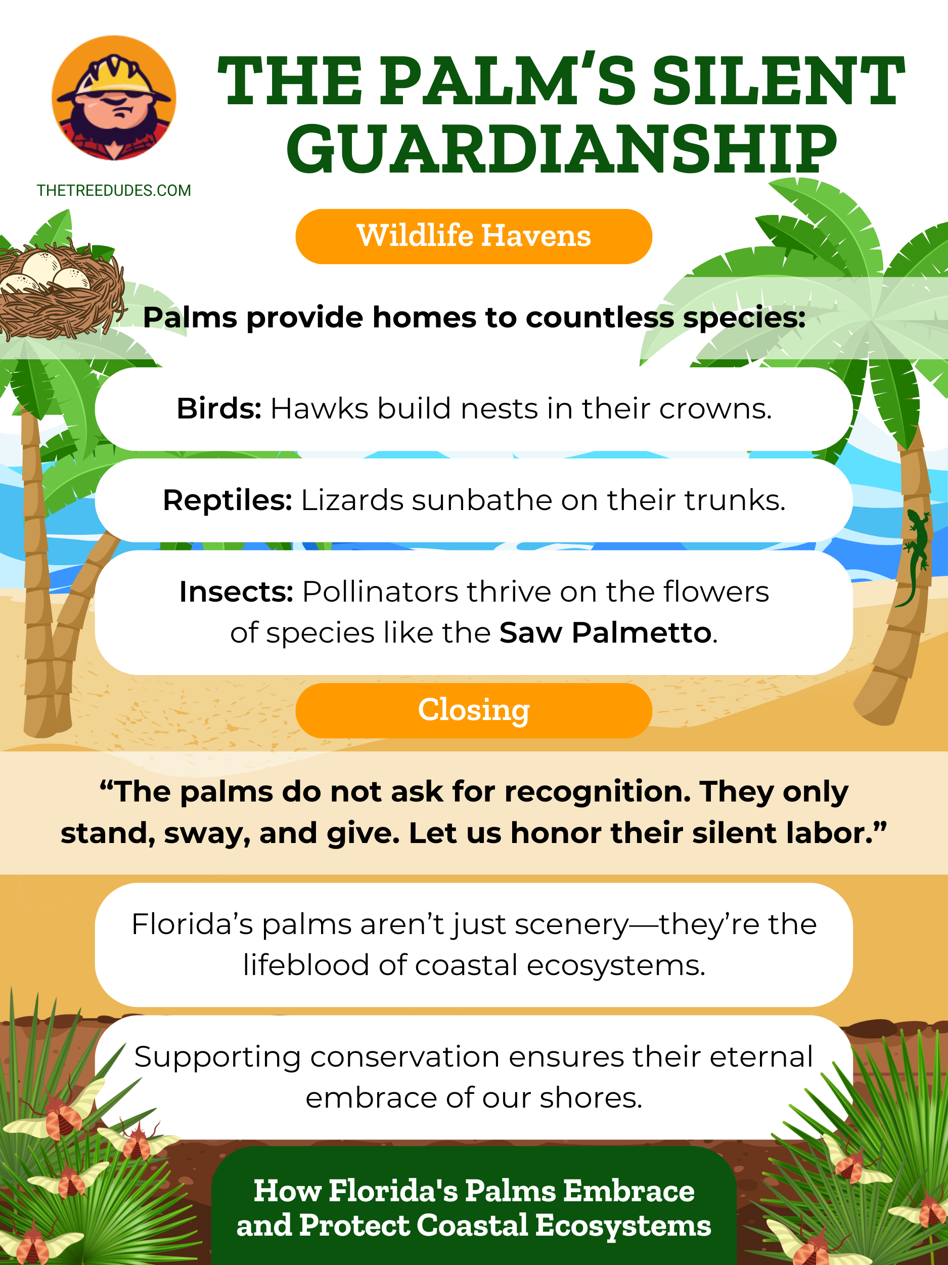 La próxima vez que pasee bajo la sombra de una palmera, deténgase un momento. Aprecie las historias que cuentan estos árboles, su fuerza, su gracia y su conexión duradera con la tierra. Las palmeras de Florida son guardianas de la belleza del estado y representan el frágil equilibrio entre la naturaleza y la humanidad.