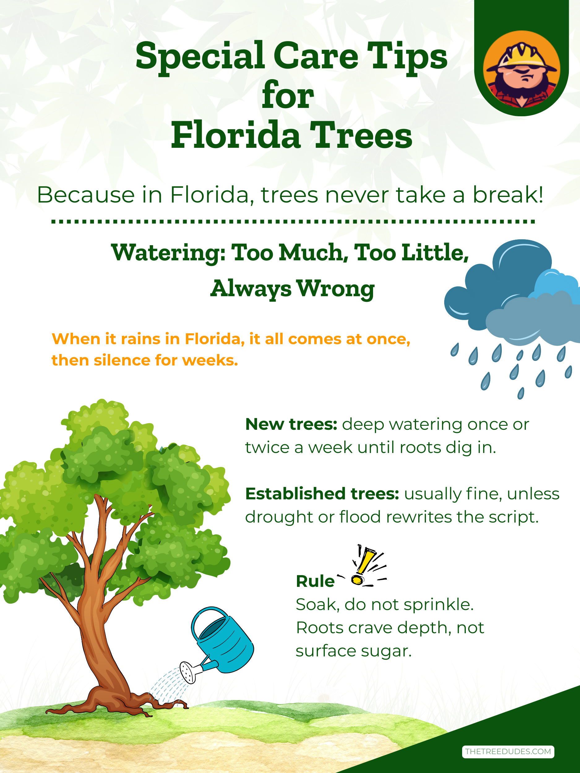 No olvidemos que el clima de Florida puede ser tanto una bendición como una maldición para los árboles. El sol durante todo el año y la larga temporada de crecimiento significan que el roble de su jardín podría crecer como un cohete.