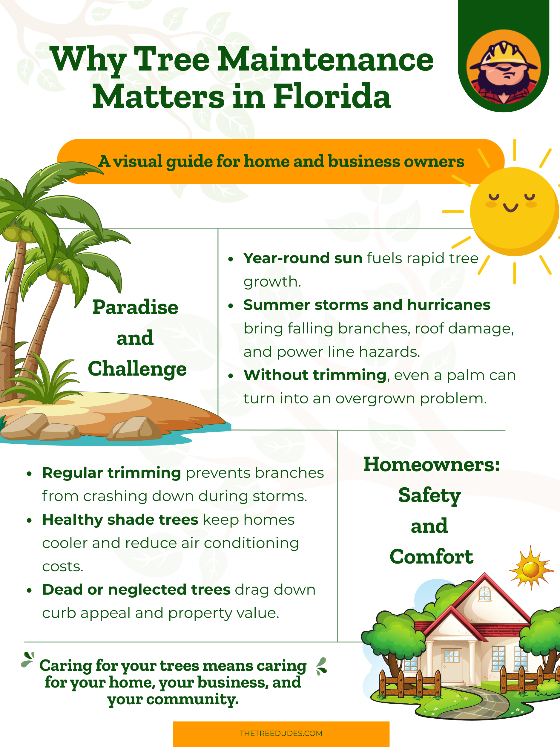 El paisaje de Florida se define por su vibrante vegetación. Desde los cocoteros que se mecen sobre South Beach hasta los viejos robles vivos que dan sombra a las calles históricas. Sin embargo, sin un mantenimiento adecuado, este paisaje puede convertirse rápidamente en un problema. Una palmera bien cuidada es, en esencia, el modelo de Instagram del mundo vegetal.