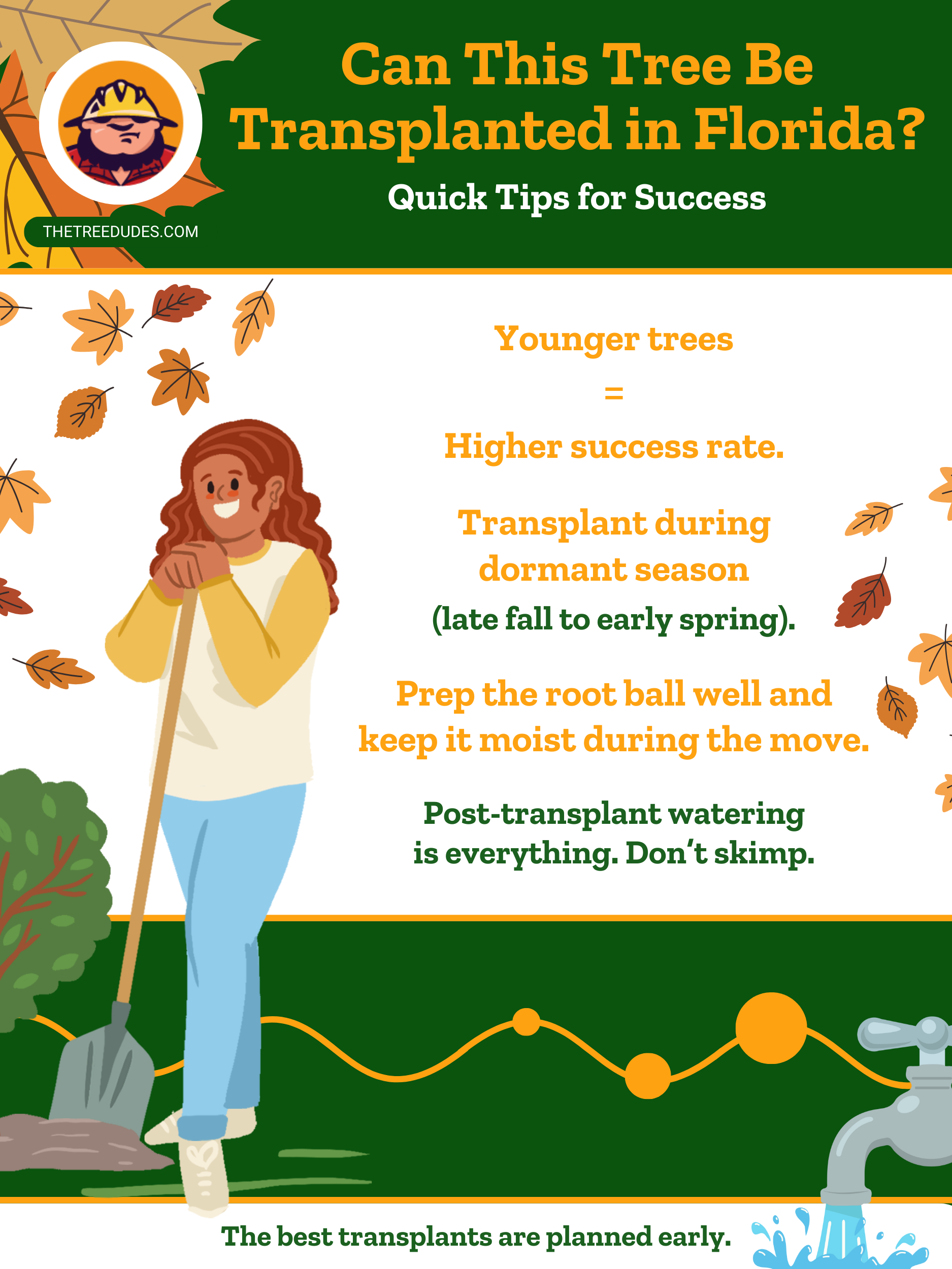 Cada jardín tiene sus pequeños misterios y mover un árbol puede resultar una experiencia distinta cada vez. El clima de Florida puede ser impredecible, por lo que aquí le ofrecemos algunos consejos adicionales para tener en cuenta.