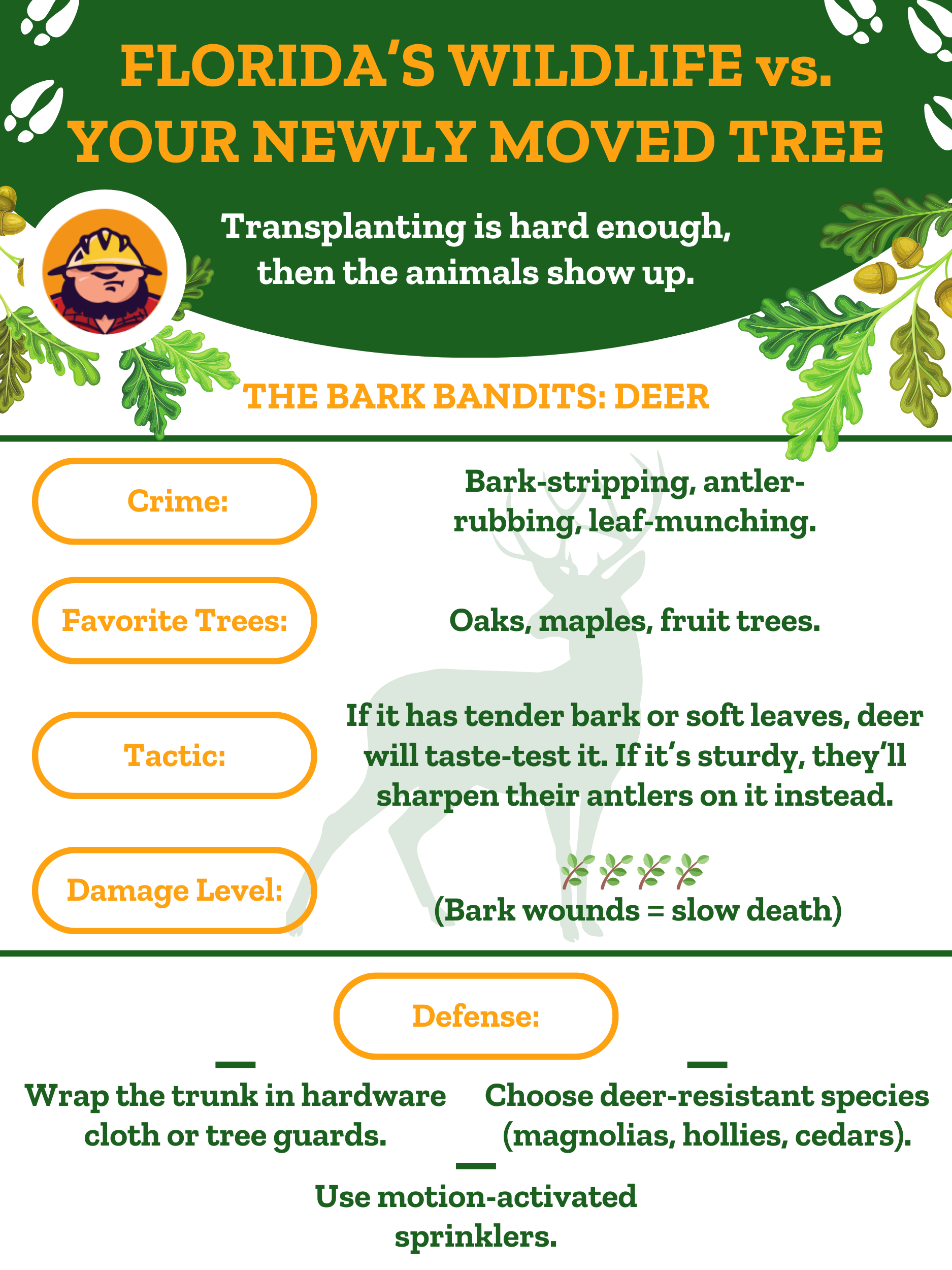 Por ejemplo, a los ciervos les encanta mordisquear hojas tiernas y jugosas y frotar sus astas contra la corteza.